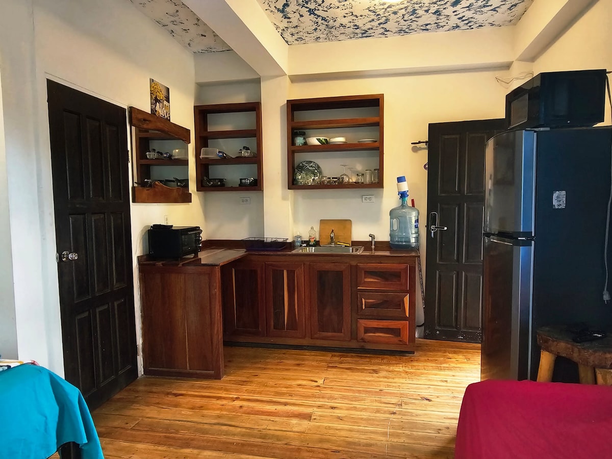 * Propriété privée sécurisée. * Aménagement du studio * Lit queen size. * Canapé-lit gigogne supplémentaire. * Coffre-fort * Quartier de Fort George. * Restaurants, bars, supermarchés. * Piscine. * Eau en bouteille fournie. * À 5 minutes du terminal de bateaux-taxis Et la mer des Caraïbes. * Parfait pour les escales à destination ou en provenance de San Pedro ou Caye Caulker. * WiFi rapide, climatisation froide, douches chaudes * À 20 minutes de l'aéroport international. * Taxi disponible. * Parking privé sur place.