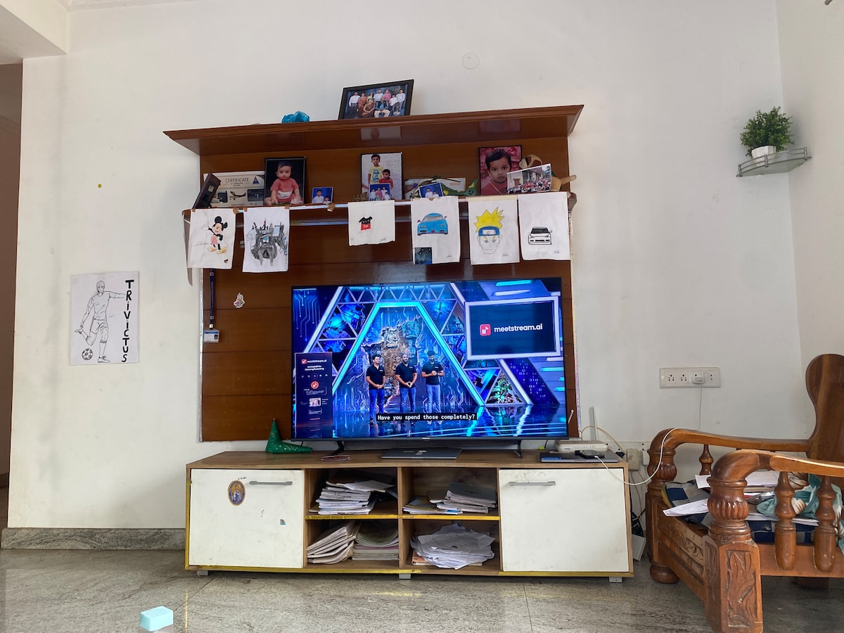 Bienvenue dans notre confortable retraite centrale ! Cette charmante maison de 2 chambres (rez-de-chaussée) est votre maison idéale loin de chez vous, nichée au cœur d'Indiranagar, Bangalore. CARACTERISTIQUES principales : 2 chambres (100 pieds carrés chacune) et 2 salles de bain Télévision 55 pouces, streaming, Internet haut débit, bureau Vaisselle et couverts Cuisinière, bouilloire, grille-pain, micro-ondes, réfrigérateur et filtre à eau RO Buanderie Accès à la terrasse Parking sur place pour un petit véhicule. Services de conciergerie (détails dans la description du logement)