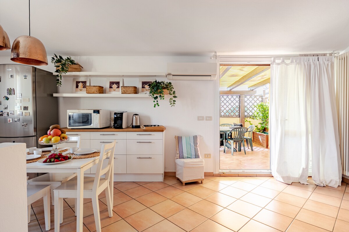 Appartement intime situé dans une zone stratégique adjacente au centre de Cesenatico dans le quartier de « Boschetto », à 150 mètres de la mer. Le logement dispose de deux chambres avec 2 lits doubles et un simple ; cuisine parfaitement équipée avec réfrigérateur, four, ustensiles divers, vaisselle, plaque de cuisson et télévision ; une salle de bain complète avec douche et machine à laver. Il y a un espace barbecue commun. Entrée privée et parking gratuit à l'intérieur de la propriété. Les animaux domestiques sont admis.