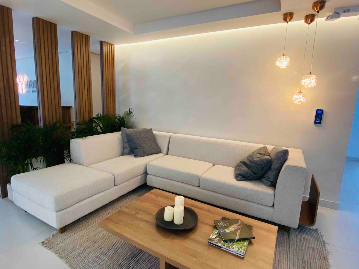 Appartement neuf très central à proximité du parc du chien supermarchés, restaurants et bars, arrêt du système de transport de masse en face de l'immeuble, surveillance de sécurité 24 heures ,DirecTV,internet haut débit, télévision 60 et 50 pouces , climatisation dans la chambre principale , Parking privé, Bâtiment et appartement avec un excellent design architectural,ambiance fraîche, jardin intérieur.