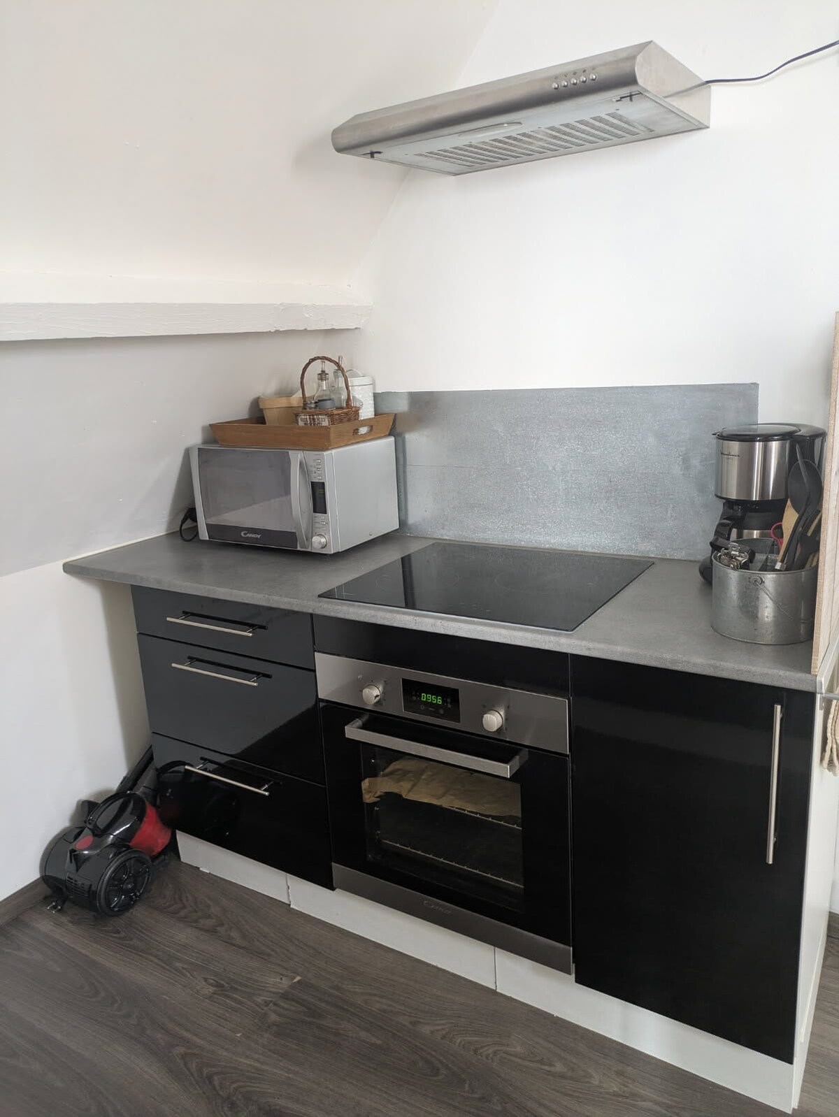 Appartement de 35 m2 adossé à une maison avec escalier extérieur indépendant. Cuisine ouverte équipée (four, plaque de cuisson, frigo, micro onde). Le salon est équipé d'un Canapé lit (1 persone adulte ou 2 enfants) et d'une TV &Wifi. 1 Chambre avec un lit de 2 personnes. Nous logeons les couples avec 2 enfants si l'un des 2 bambins dort dans un lit parapluie. Nous sommes flexibles sur les horaires d'arrivée et de départ. Le ménage est à faire par vos soins à la fin du séjour.