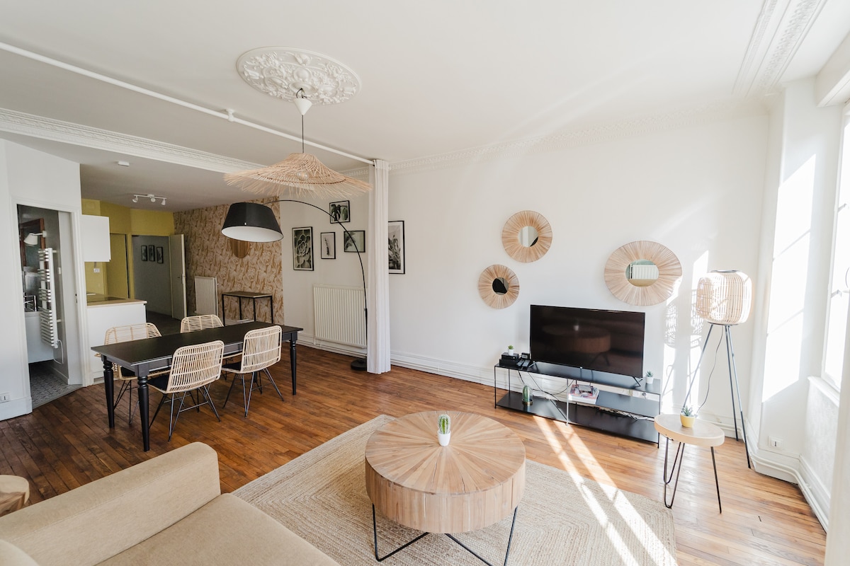 Situé en plein cœur de Verdun, ce spacieux appartement de 135m2 saura vous séduire ! Sa grande surface (double séjour, cuisine, nombreuses chambres, terrasse) en font un endroit parfait pour des retrouvailles en familles ou entre amis. Son emplacement hyper central est idéal pour visiter Verdun et ses nombreux vestiges: - Citadelle souterraine - La Cathédrale - Monument de la victoire - Champs de bataille ! Pas de fêtes ! WiFi Fibre Parking gratuit à 5 min à pied: Thiers, Pl. Thiers, Verdun.