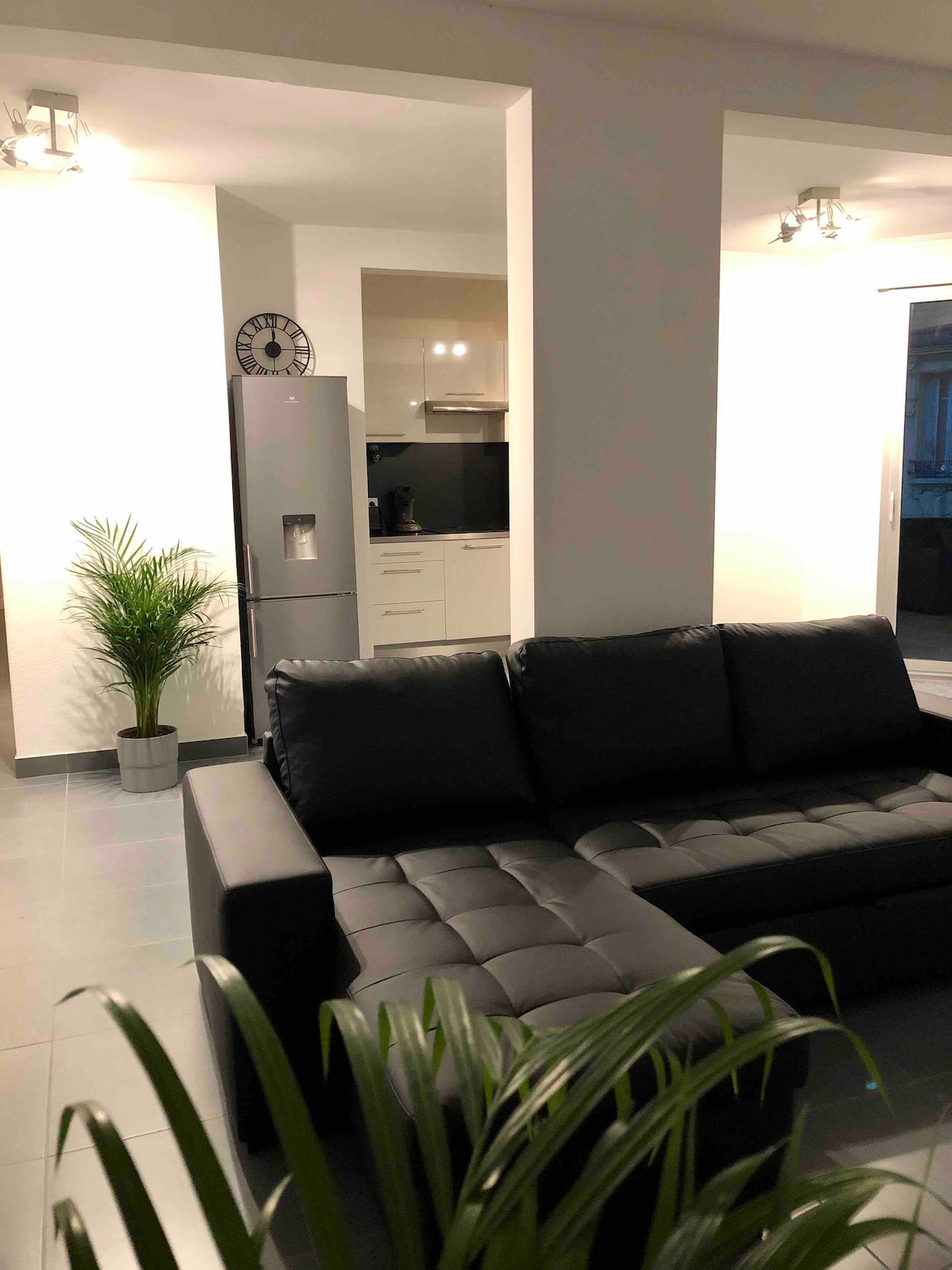Appartement de 110m2 entièrement neuf avec deux balcons, terrasse et vue magnifique sur la place Victor Hugo de Cusset. Il est composé de : - deux chambres de 15m2 chacune - salon avec cuisine ouverte de 50m2 - salle de bain de 8m2 - WC 4m2 - terrasse de 12m2 Extrêmement calme car seul appartement sur le niveau. Accès personne à mobilité réduite grâce à l’ascenseur. Tous équipé au niveau de la cuisine et literie Netflix, YouTube et internet disponible sur une télévision de 58 pouces !