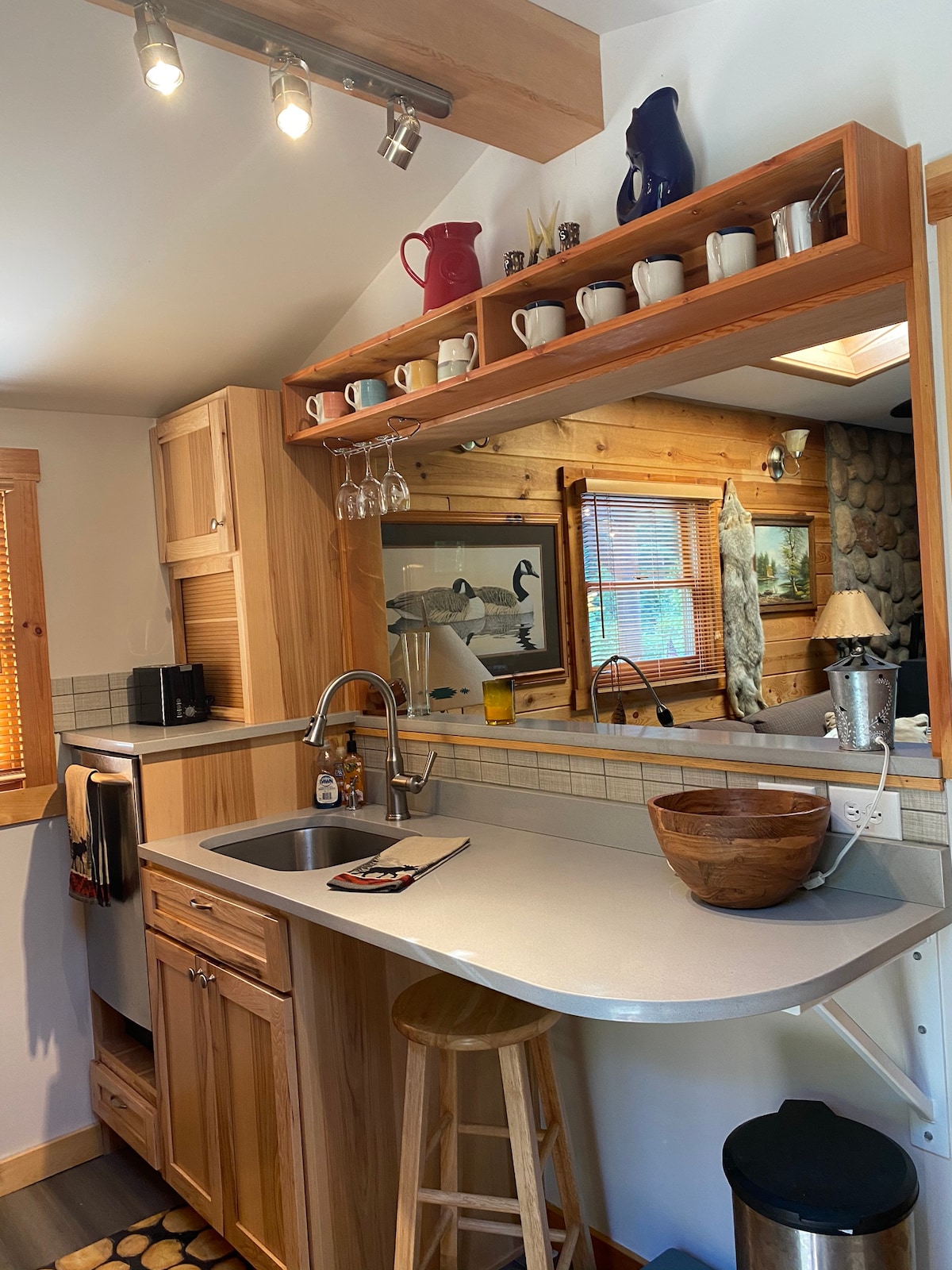 Welcome to The Studio, a tiny house nestled in the woods of beautiful Whidbey Island. Featuring custom woodwork and trim milled from trees from the site, the art-filled cabin includes a double bed in the loft (accessed via a somewhat challenging spiral staircase), a well-equipped kitchenette and Wi-Fi with high-speed internet access. Situated on five acres of woodland seven minutes from scenic Langley, it's a lovingly built sanctuary ready for you!
