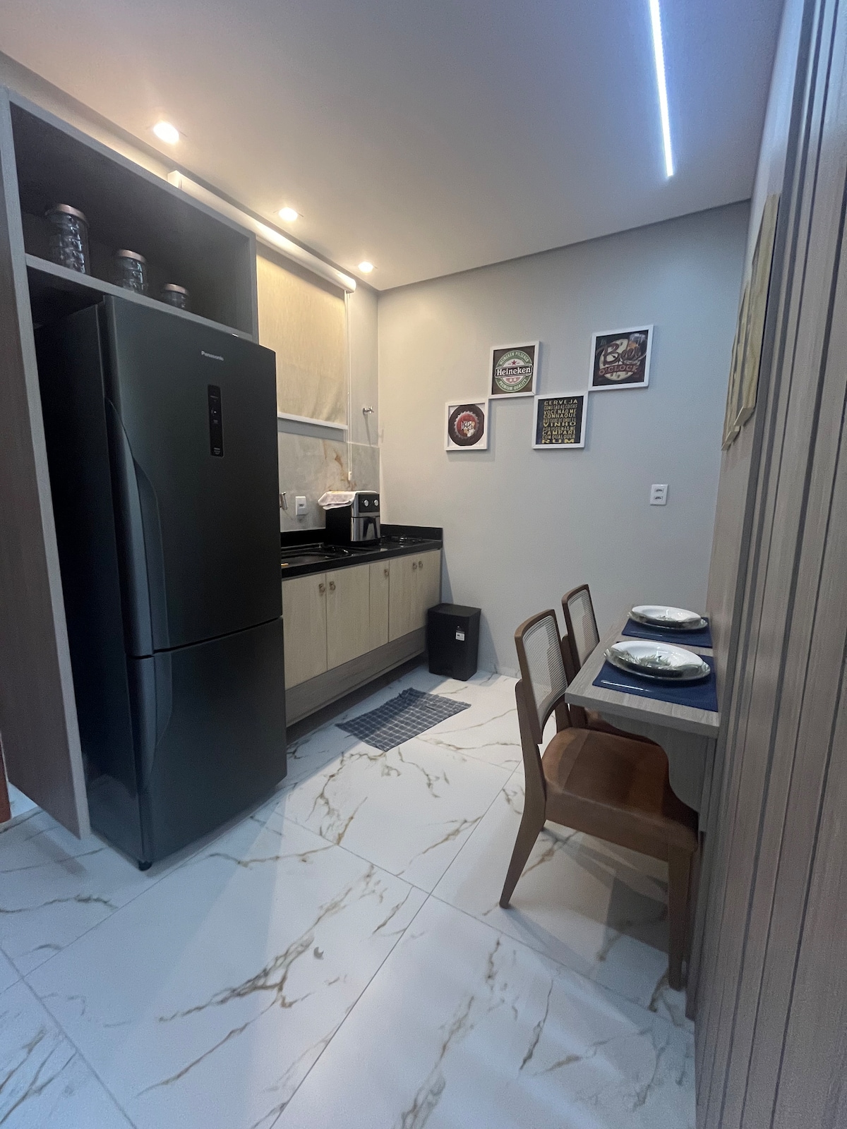 Détendez-vous dans cet espace calme et élégant. Appartement avec 1 lit double queen size, télévision intelligente 42"avec Internet, cuisine complète avec réfrigérateur, cuisinière, casseroles, vaisselle pour vos repas. Il dispose également d'une zone de service interne avec lave-linge et sèche-linge, pour votre confort. Appartement en résidence avec piscine pour adultes/enfants, aire de jeux, salle de jeux, bureaux, kiosques avec barbecue pour un délicieux barbecue.