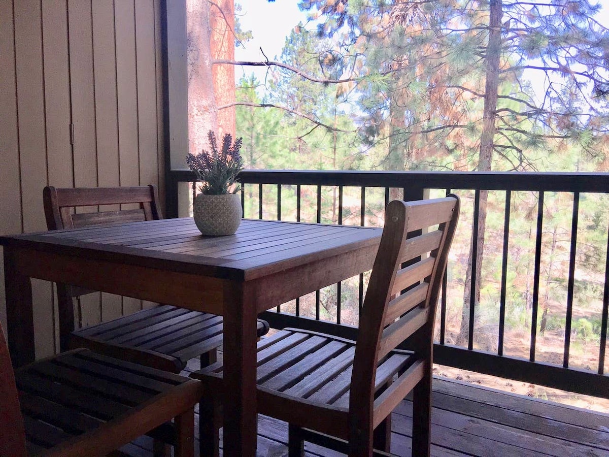 A perfect home base for all your adventures in Bend! Just a 10 minute walk from downtown. Walk or bike to the best restaurants and breweries in Bend. Swimming, hiking, and fishing in the Deschutes river steps from your doorway. King Bed~ Gas fireplace ~ Reading nook ~ Comfy queen sleeper sofa ~ Air Conditioning ~ Games ~ 2 TVs ~ Full kitchen ~ 2 balconies ~ Keyless Entry ~ Shared laundry room ~ 2 Bathrooms ~ K Cup coffee bar ~ Private WiFi ~ Roku TVs