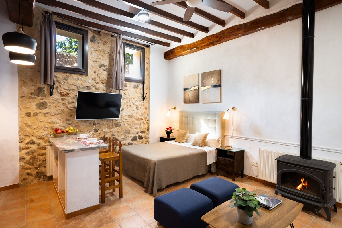 Venez profiter de la nature et du calme d'un village de montagne. Notre logement est parfait pour un couple, mais avec le canapé-lit, vous pouvez venir avec les enfants ou même deux couples. Nous sommes à 100 mètres du village, avec une atmosphère où vous pouvez respirer la paix et la tranquillité. Dans le jardin avant, il y a quelques arbres, un potager et un labyrinthe avec 700 cyprès. Derrière se trouve la terrasse où vous contemplerez la vue sur la montagne du Cavall Verd, où le petit déjeuner sera un spectacle.