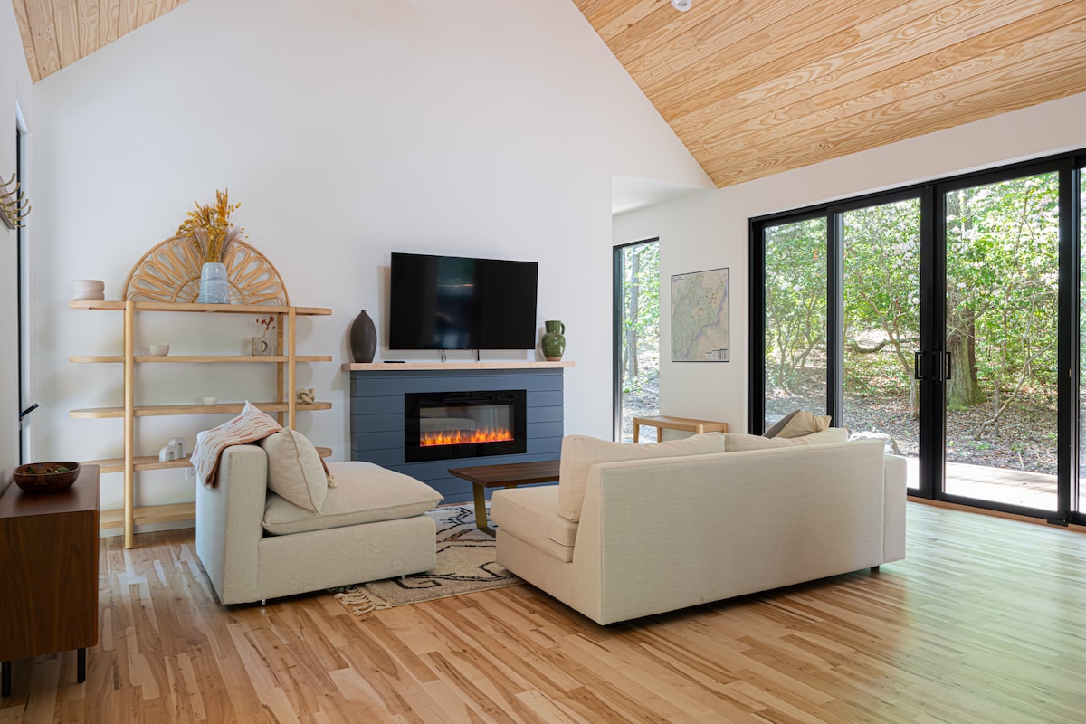 Détendez-vous dans cet espace calme et élégant. Cette maison d'inspiration scandinave, récemment construite, vous donne l'impression de vous être éloigné de tout, tout en étant à seulement 12 minutes du centre-ville d'Asheville. Détendez-vous dans le jacuzzi sur la terrasse entourée de la canopée de laurier de montagne, blottissez-vous près de la cheminée et regardez un film, ou baignez-vous simplement dans la forêt à travers les fenêtres du sol au plafond pendant que vous prenez votre café au lit.