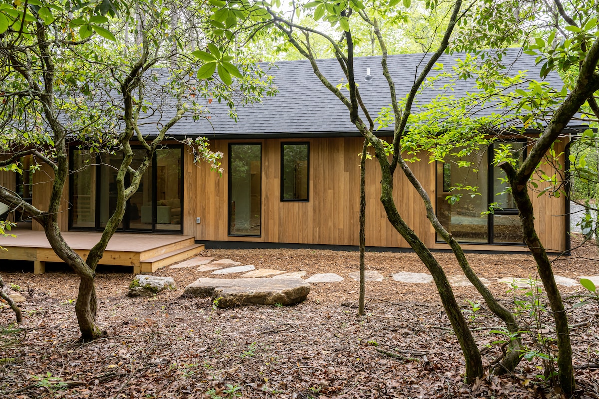 Retraite à Asheville construite en 2024 avec foyer et cheminée