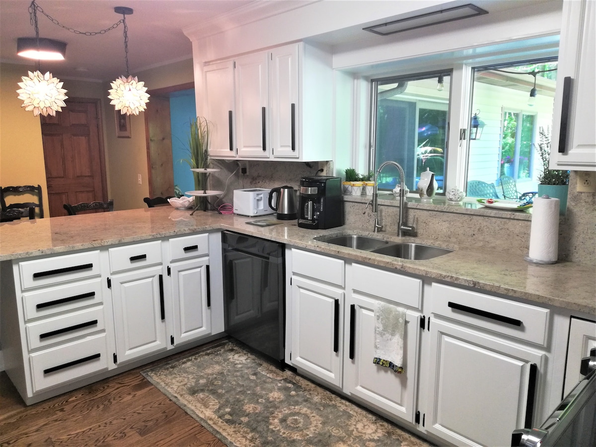 Belle maison rénovée, parfaite pour les familles avec des espaces de couchage à l'étage et en bas. À l'étage, il y a une chambre principale spacieuse avec 1 lit King Size et un canapé-lit et une salle de bain principale. La chambre 2 dispose de 2 lits jumeaux ainsi que la chambre 3 (2 lits jumeaux). En bas, il y a une cuisine spacieuse et un coin salon avec 2 lits futon. À l'extérieur, un patio spacieux avec foyer à proximité. La maison est proche de Jollay Orchards et Contessa Wine Cellars. Les belles plages de St. Joseph et Silver Beach sont à 20 minutes.