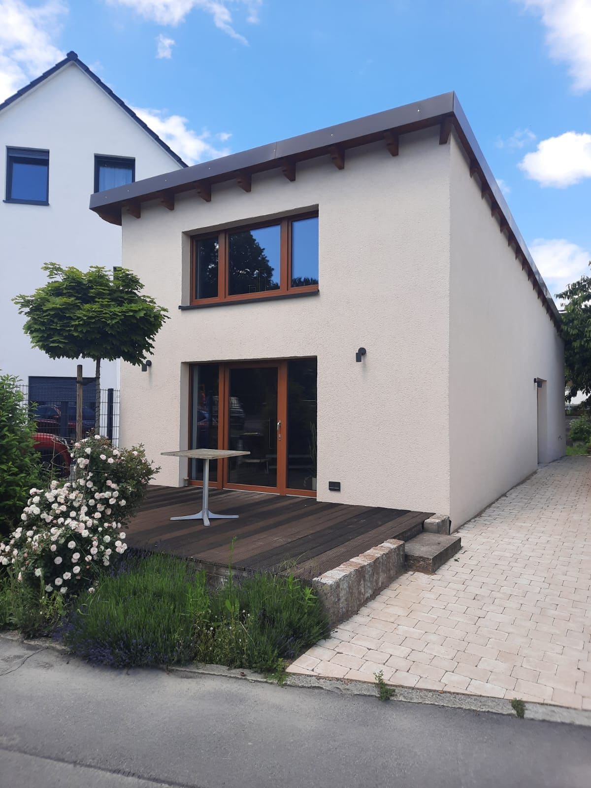 L'abri de jardin massif, bien isolé avec terrasse couverte, se trouve à l'arrière du beau jardin. Il est entièrement équipé de chauffage électrique et d'un poêle (acier avec fenêtre), de meubles, de linge et d'accessoires. Emplacement : dans le nord verdoyant de Düsseldorf dans un quartier résidentiel calme. À distance de marche de la foire, du LantscherPark, de l'arène de jeux de Mercure et du Rhin. Idéalement situé près de l'aéroport, il peut donc y avoir des nuisances sonores élevées jusqu'à 23 h.