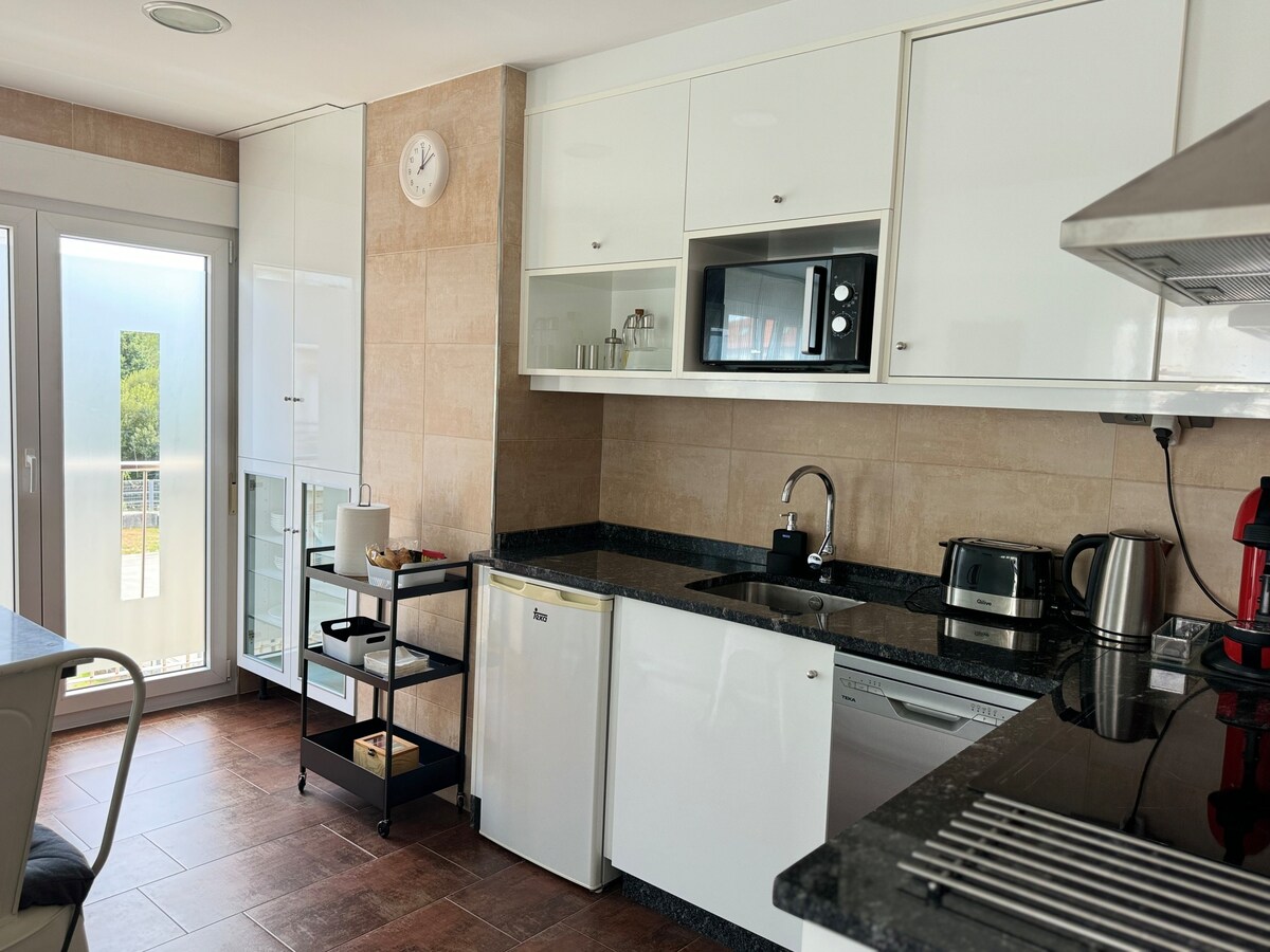 Appartement confortable et calme avec possibilité d'accueillir jusqu'à 4 personnes. Profitez de la proximité de Santiago et du calme de la campagne. À proximité des sentiers de randonnée. Cuisine entièrement équipée. Il dispose d'un lave-linge et d'une place de garage. Il y a des restaurants, des pharmacies, des bars, des supermarchés et des aires de jeux pour enfants à quelques mètres. Arrêt de bus pour le centre de Santiago en face du portail. C'est un village de charme, avec beaucoup d'espace vert, à 20 min des plages de Noia et à 30 min de la Costa da Morte.
