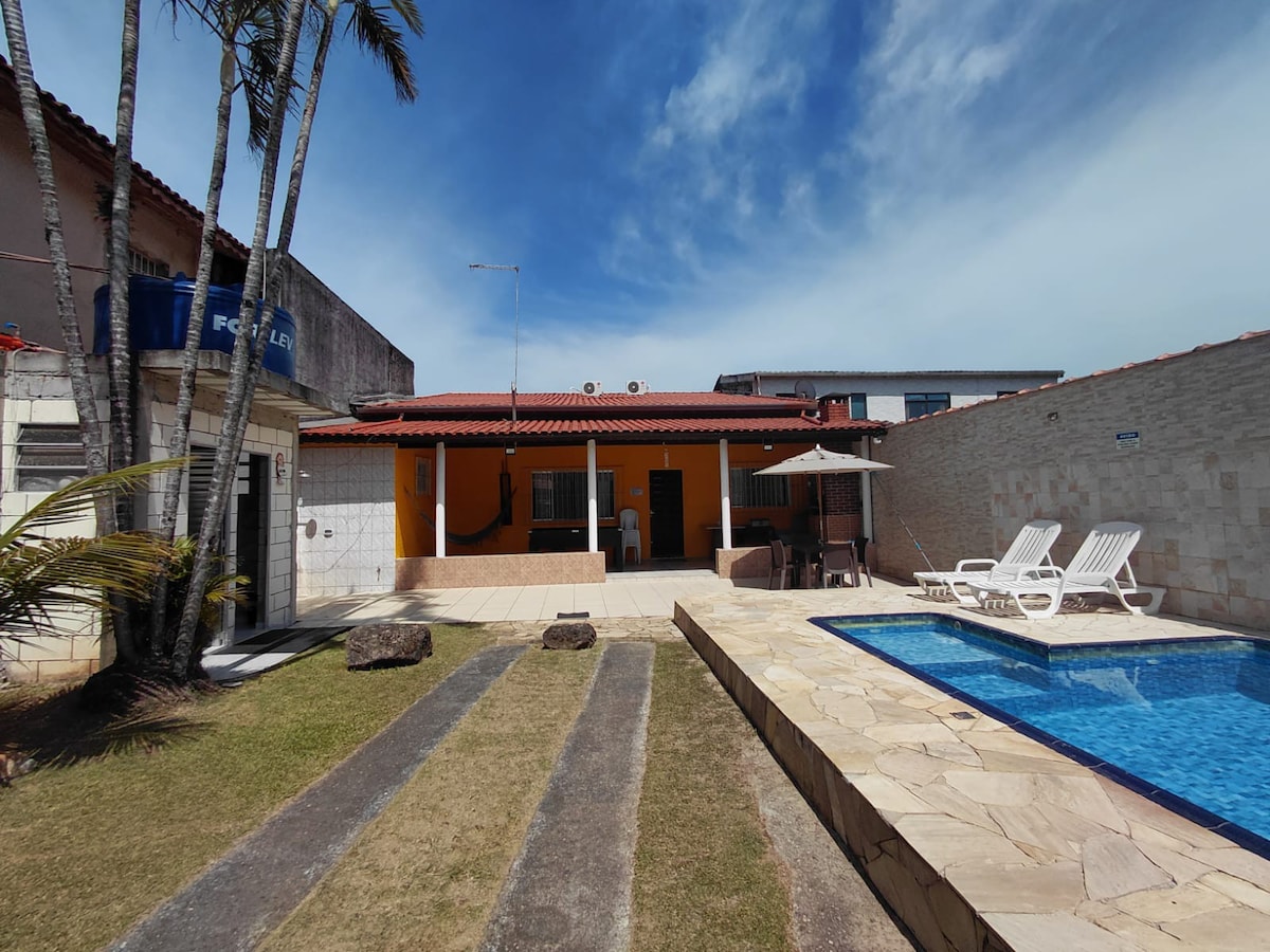 Très proche de la plage (25 mètres) Venez avec votre famille dans ce lieu confortable pour vous détendre et écouter le bruit de la mer *CE N'EST PAS SUR LA RIVIERA* 📍 Maison située à Praia da Enseada, dans le quartier de Jardim das Canções, à côté du SESC. ✨Rue calme avec peu de mouvement 🏠Construction neuve et moderne 🛋️Décor chaleureux 🍽️Cuisine bien équipée et espace barbecue 💧 Piscine avec chauffage à l'ozone et solaire ☀️ En hiver, avec le soleil, elle atteint un maximum de 26 °C. Profondeur : 1,40m 🚐 Nous n'acceptons pas les FOURGONNETTES.
