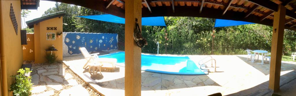 La maison est très confortable et en parfaite harmonie avec la nature, dans une communauté fermée et 24h de sécurité. L'espace extérieur dispose d'un grand jardin avec des palmiers, des cocotiers et des arbres fruitiers. Le barbecue et la table sur le balcon permettent une intégration parfaite entre tous les voyageurs, que ce soit à l'intérieur de la maison, dans le jardin, la piscine et le bar. La plage, qui est à 200m de la maison, est propre, plate et avec de l'eau cristalline, avec des vagues modérées.