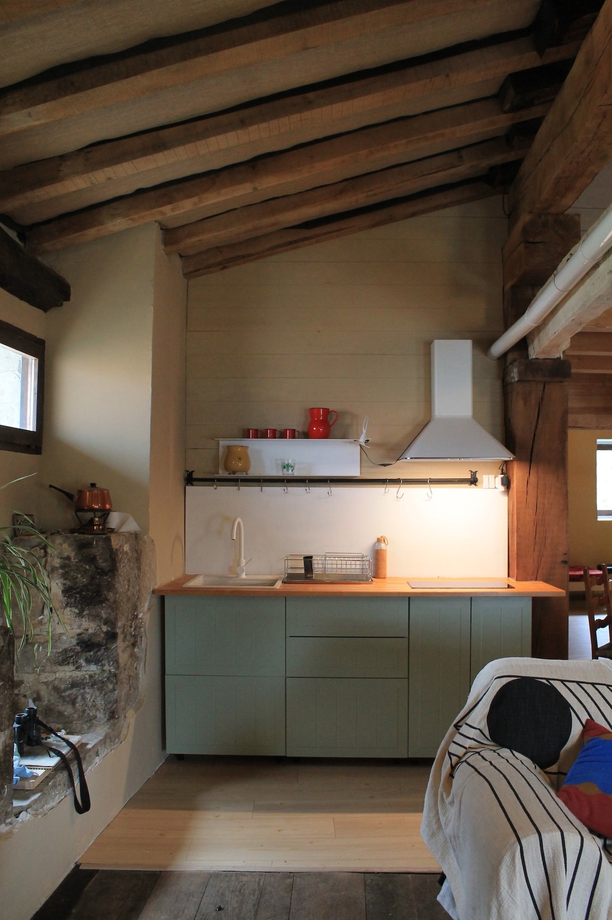 Bienvenue à Zialzeta, c'est une ferme du XVIIe siècle divisée en 3 logements indépendants. C'est l'un d'eux, orienté au sud-est. Il se compose d'un rez-de-chaussée avec jardin, porche, cuisine-salle à manger ouverte sur le salon et un petit WC. À l'étage supérieur, il y a une grande salle de bains avec douche, et 3 belles chambres, l'une d'elles donne accès à la ferme, mais l'accès principal se fait par le rez-de-chaussée. Il dispose d'un jardin de 100 mètres à usage privé où vous pourrez manger en pleine nature.