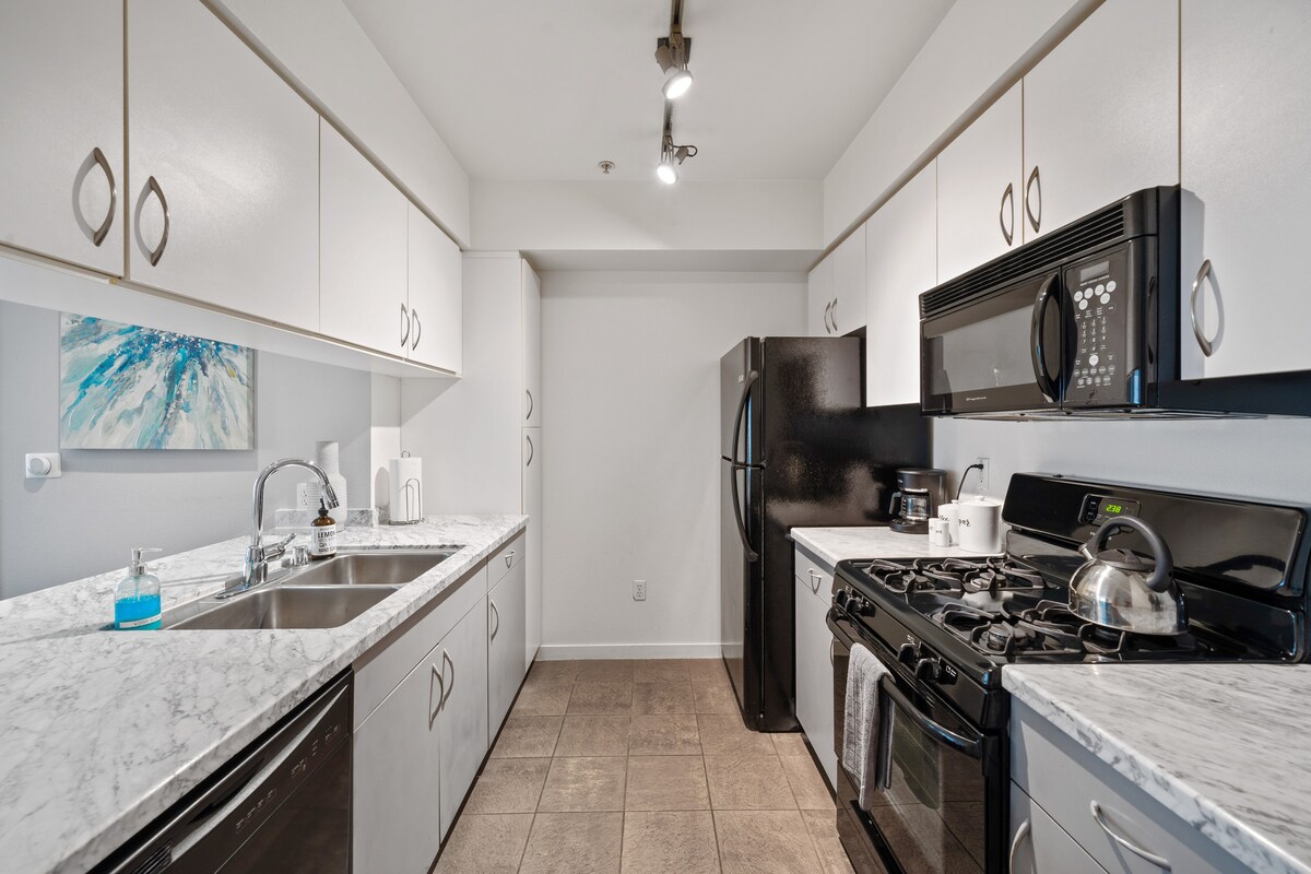 Cet appartement de luxe high-tech récemment rénové est une escapade privée à proximité du stade SoFi (1 pâté de maisons), du Forum, à 10 min de LAX et à 20 min du centre-ville de Los Angeles. Profitez de cet appartement moderne entièrement rénové qui comprend une cuisine ouverte, des comptoirs en quartz, des appareils en acier inoxydable, un grand réfrigérateur avec filtre à eau, un lave-vaisselle, une cuisinière à gaz/four, un micro-ondes, une poubelle, une cafetière, un grille-pain, entièrement approvisionné avec tous les ustensiles de cuisine pour préparer n'importe quel repas !