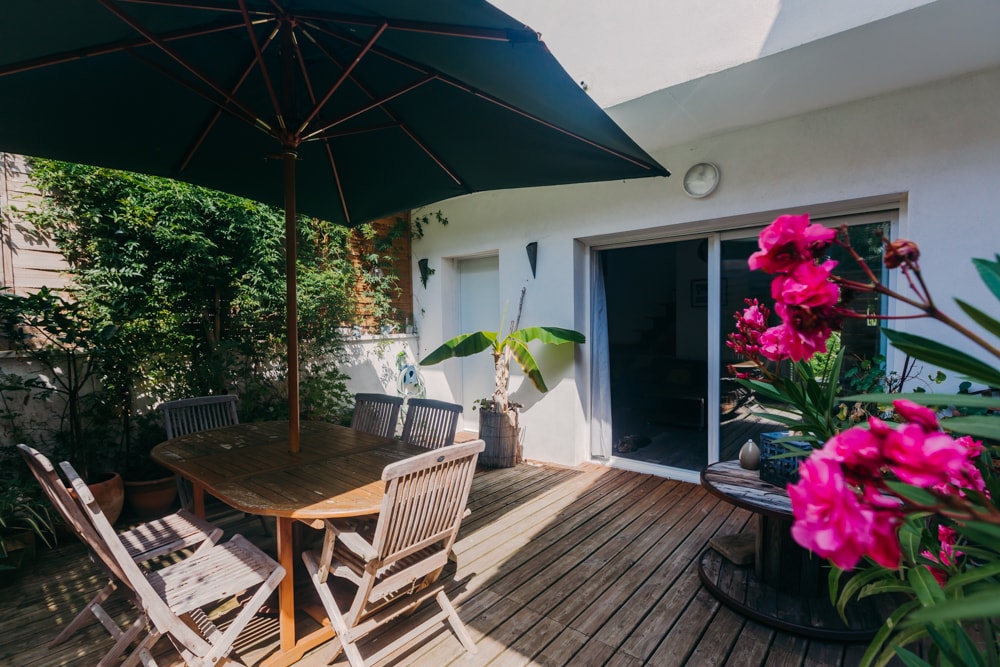 Adorable petite maison de ville avec joli jardin, situé dans un quartier résidentiel proche du Conservatoire. Deux chambres au premier étage, et séjour, cuisine, sdb et buanderie au RDC. Jardin extérieur sans vis à vis avec petit bassin pour se rafraîchir, et BBQ. Décorée avec goût cette maison est une petite galerie d’Art, rassemblant œuvres personnelles, photographies, et objets de voyage. PARKING disponible devant le garage. A proximité supermarché, station d’essence, pharmacie et hôpital.