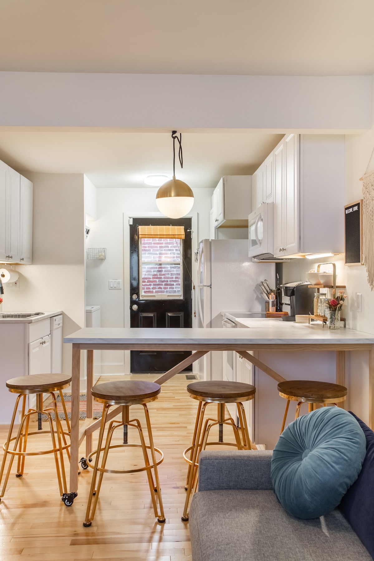 Ce joyau de Germantown a des vibrations bohèmes du milieu du siècle dans un appartement propre, aéré et confortable. Cet espace a été conçu avec beaucoup d'intention en accordant une priorité élevée au confort, à la fluidité, à la commodité et à la détente. Détendez-vous dans la baignoire extra large, reposez-vous sur les couches confortables de literie extra-propre, passez une soirée de jeu épique, ou simplement Netflix et détendez-vous après une longue journée d'exploration. Permis de location de courte durée : 2O18STRO59799 Cet appartement est l'unité avant d'une maison triplex de plain-pied. Il y a des locataires à long terme dans l'unité du milieu et nous vivons dans l'unité arrière avec nos deux bébés. Nous adorons cet endroit et espérons que vous l'apprécierez aussi ! L'espace extérieur, devant et derrière, est partagé. Ce petit bijou de maison est parfaitement situé dans le plus rêveur des quartiers de Nashville. Germantown est historique, branché, centré sur la nourriture, rempli de peintures murales, amusant, idéal pour observer les gens, vraiment accessible à pied avec une vue sur l'horizon du centre-ville depuis tous les trottoirs bordés d'arbres. Vous trouverez de belles maisons historiques, des boutiques, des restaurants, des bars, des studios de yoga, des salons de coiffure et de manucure, des spas, une épicerie et beaucoup de personnalité dans ce petit quartier bondé ! Il y a beaucoup d'arrêts de bus à proximité, mais Nashville n'a vraiment pas les meilleurs transports en commun. Nous vous recommandons d'utiliser Uber/Lyft (environ 7 $ pour vous rendre aux honky tonks du centre-ville). Les trottinettes Bird/Lime sont très bon marché et se trouvent partout dans notre quartier (environ 3 $ pour se rendre sur Broadway/au bord de la rivière). Les locations de vélos B cycle sont également peu coûteuses et disponibles à proximité, au coin de la 5e Avenue N et de la rue Monroe. Enfin, ce quartier ne compte que 6 pâtés de maisons et se prête à une belle promenade en milieu d'après-midi. N'oubliez pas que bien que cet appartement puisse accueillir 6 personnes facilement, il n'y a qu'une seule salle de bain.