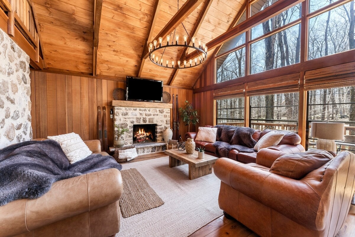 Chalet rustique dans les Poconos • Foyer • Retraite 2 chambres