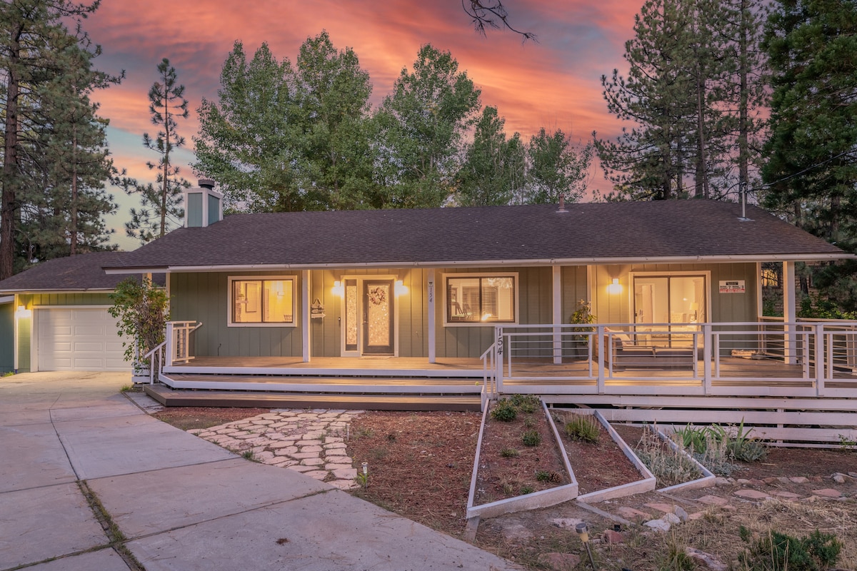 Bienvenue dans notre charmante cabane de plain-pied, parfaite pour les familles et les jeunes aventuriers ! Située à seulement 3–4 minutes de Snow Summit et de Bear Mountain, notre retraite confortable offre un accès facile aux navettes gratuites afin que vous puissiez éviter les tracas de la conduite. Vous serez à quelques minutes du lac, du village, des épiceries et des restaurants. Profitez d'une promenade relaxante jusqu'au café, au terrain de golf, au zoo et aux sentiers forestiers. L'aventure et la commodité vous attendent !