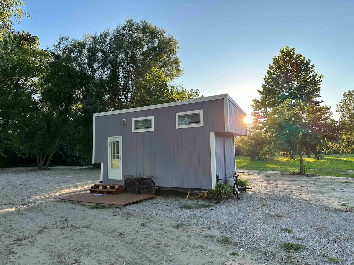 « Maison minuscule » de 400 pieds carrés en bordure de bois sur une propriété privée avec des voisins en vue. Cadre rural. À l'extérieur : espace vert et arbres ! À l'intérieur : confortable, mignon, moderne et agréable palette de couleurs. Parking spacieux et bien éclairé dans l'allée à côté du trottoir menant à votre patio. Ici pour un long week-end, un mariage ou le travail ? Parfait ! À 25-30 minutes d'Atchison, Weston et de l'aéroport de Kansas City. À moins de 5 minutes de St. Joe, essence et nourriture. Lisez la suite pour en savoir plus sur le cadre et les équipements.