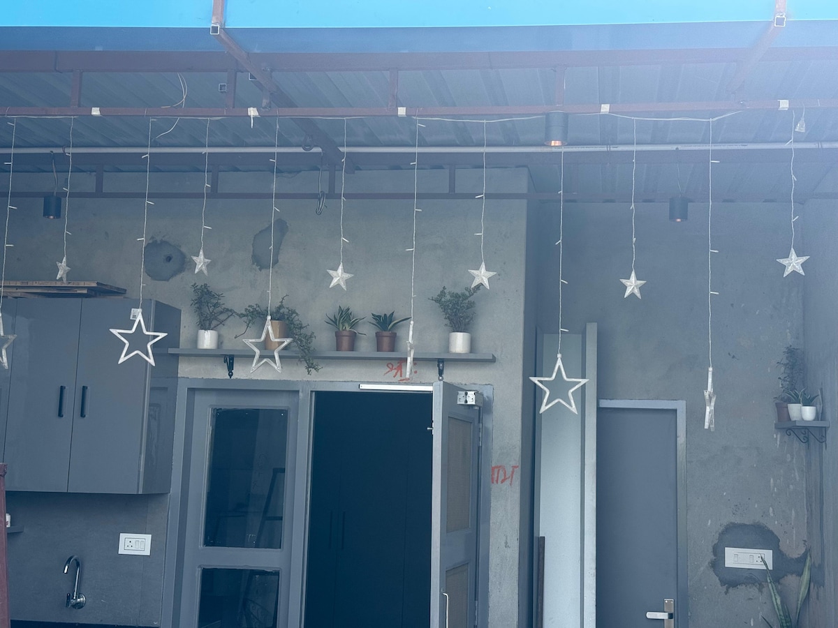 🏠 1 BHK flat, well-maintained to provide a relaxed, homely experience. The flat comfortably accommodates 4 guests. Located on the first floor, A terrace with a pleasant view. Amenities 1 King size bed + 1 single bed 🛏️ Godrej 1.5 Ton Split AC 🌬️ 55-inch LED Smart TV 📺 Samsung Washing machine 🧽 Fully equipped kitchen 🍽️ Hot Water Geyser 💧 Ironing Stand with Iron 🎽 Parking space 🚗 #BikanaBasera1BHK 🏡