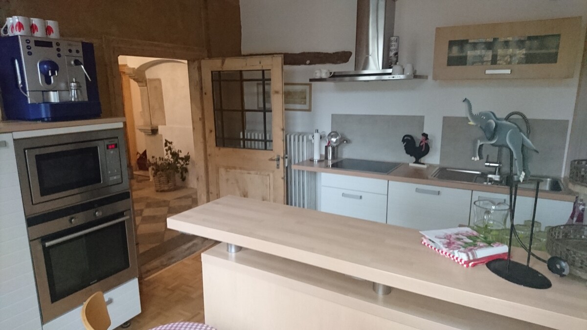 Aasee, 55pm, 1er étage + cuisine au rez-de-chaussée, salle de bain, balcon, cheminée
