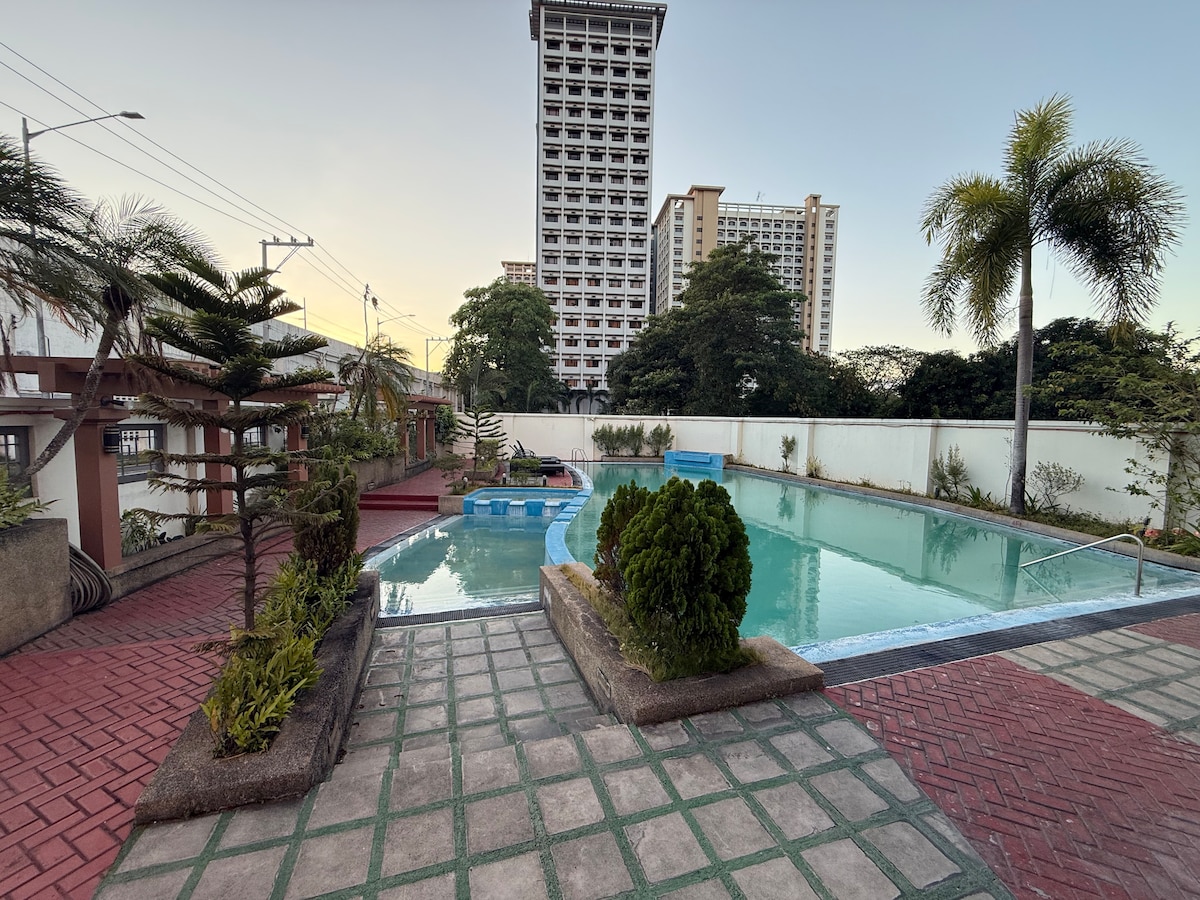 Stay in the center of the action in this one-of-a-kind place. Near to everything that you need. A very nice place to stay, hangout or just chill. * Aircondition * 65-inch TV * Soundbar Speakers w/ Subwoofer * WiFi * Air Purifier * Bed Size Double 54x75 * Pull-out Bed size twin KITCHEN * LG Refrigerator 7cuft. * Induction Cooker * Microwave Oven * Electric Kettle Pots & Pans * Kitchenwares & Utensils * Dinnerware BATHROOM * Single Point Water Heater * Fully Automatic Washing Machine