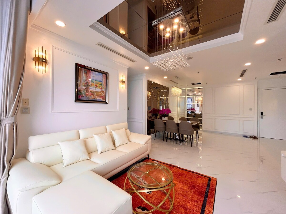 Échappez à la folle vie professionnelle quotidienne dans cette escapade luxueuse et relaxante ! Le penthouse de 160 m2 en pleine intimité (3 chambres + 3 salles de bains) a été conçu dans un style moderne et entièrement équipé. Il est situé dans le superbe complexe Vinhomes Central Park. L'appartement Amavi vous promet une expérience merveilleuse grâce à sa décoration unique, sa vue imprenable sur le fleuve, ses gadgets étonnamment bien conçus et notre hospitalité qui vient du cœur. C'est l'endroit idéal pour un grand groupe/famille en vacances. Merci d'en prendre connaissance tout le monde !!!!