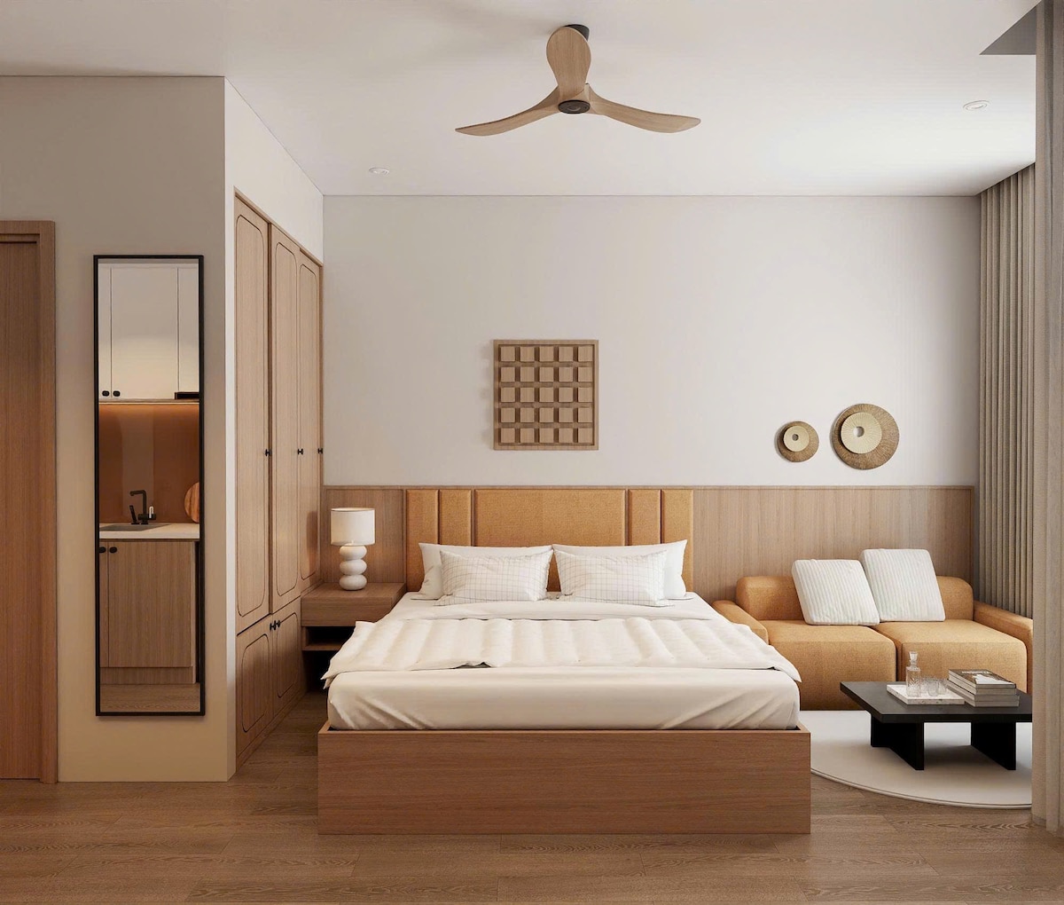 Vous utiliserez l'ensemble de l'appartement privé d'une chambre et d'une salle de bains. L'appartement a un design élégant et sophistiqué à côté de Landmark 81 L'appartement est entièrement équipé avec Smart Tivi - Internet, cuisine avec ustensiles de cuisine et savon de douche inclus. * Veuillez noter que si vous avez une demande spéciale, veuillez nous le confirmer avant de faire une réservation car nous pouvons modifier l'appartement de manière flexible pour répondre à votre demande, il n'y a que des différences dans la décoration et la vue, n'hésitez pas à nous contacter.