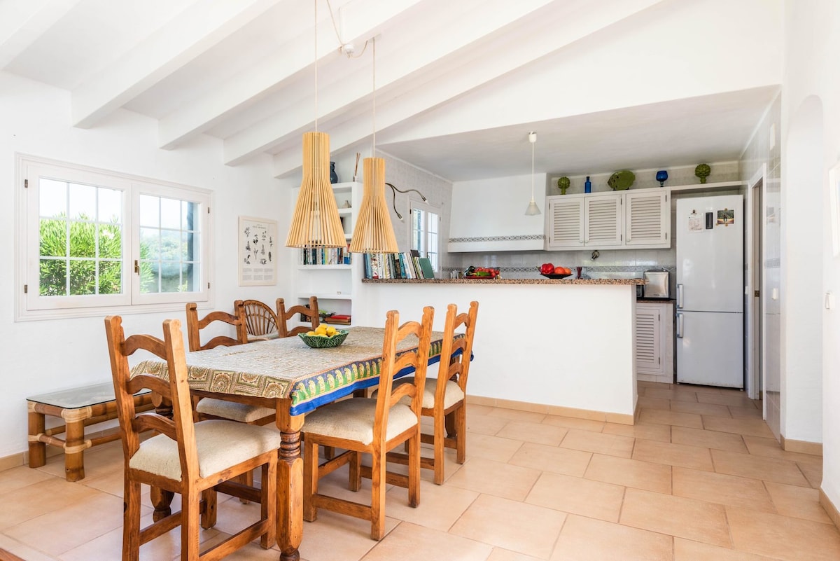 Elle est située à Binidali, Minorque, un charmant quartier résidentiel sur la côte sud de Minorque, avec vue sur la mer et à distance de marche de la plage. La propriété se trouve sur un magnifique terrain avec terrasse, piscine et vue sur la mer, idéal pour passer d'agréables moments en bonne compagnie. Clôture de piscine sur demande. La maison de plain-pied comprend trois chambres avec ventilateurs de plafond et deux salles de bains (une en suite). Barbecue et Internet. Aéroport à moins de 6 km, restaurants à proximité. Ventilateurs de plafond.