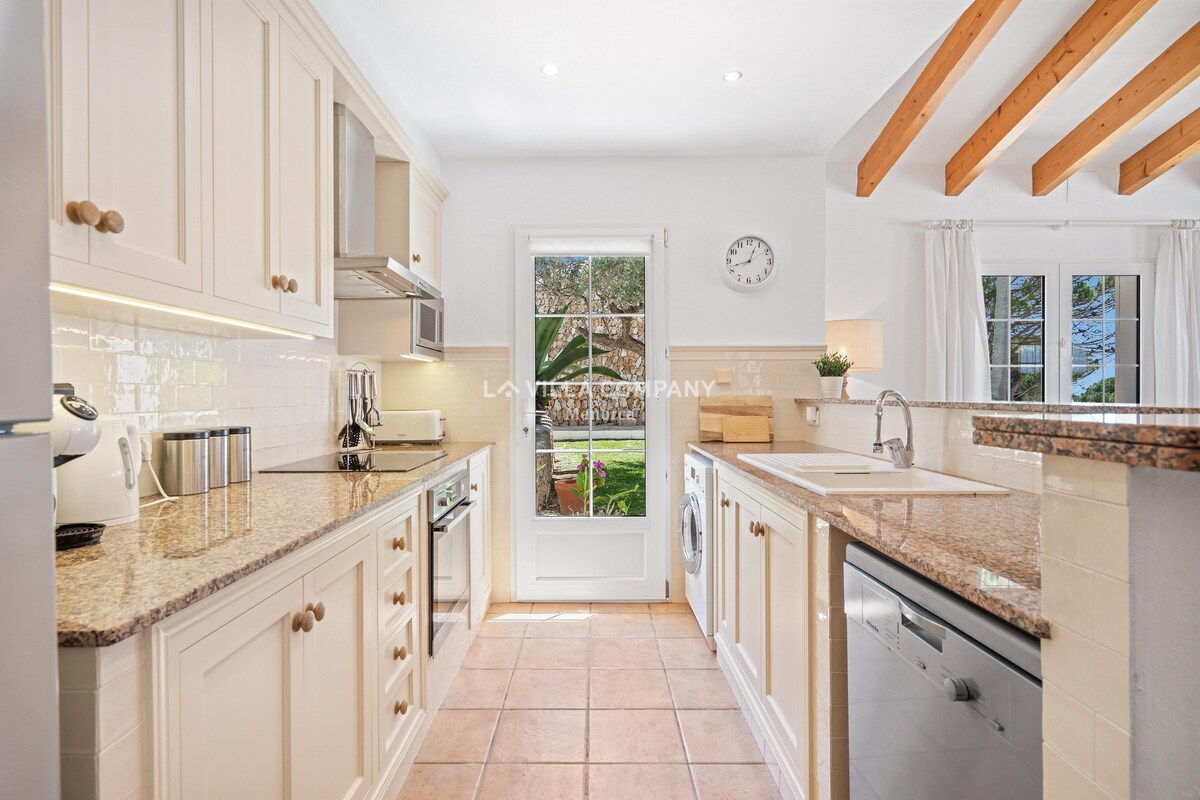 Completely refurbished traditional Menorcan Villa with private garden and pool. Enjoying a prime location on the Paseo Maritimo, and refurbished to a high standard throughout, this villa is a perfect choice. The Plot with partial sea view is surrounded by newly landscaped gardens, mature hedges, and a large solid wood electric gate for added privacy. There are 2 supermarkets within 3 mins walking distance, the sea (rocks and coves) at 2 mins, and the Binibeca beach a 10 minute walk.