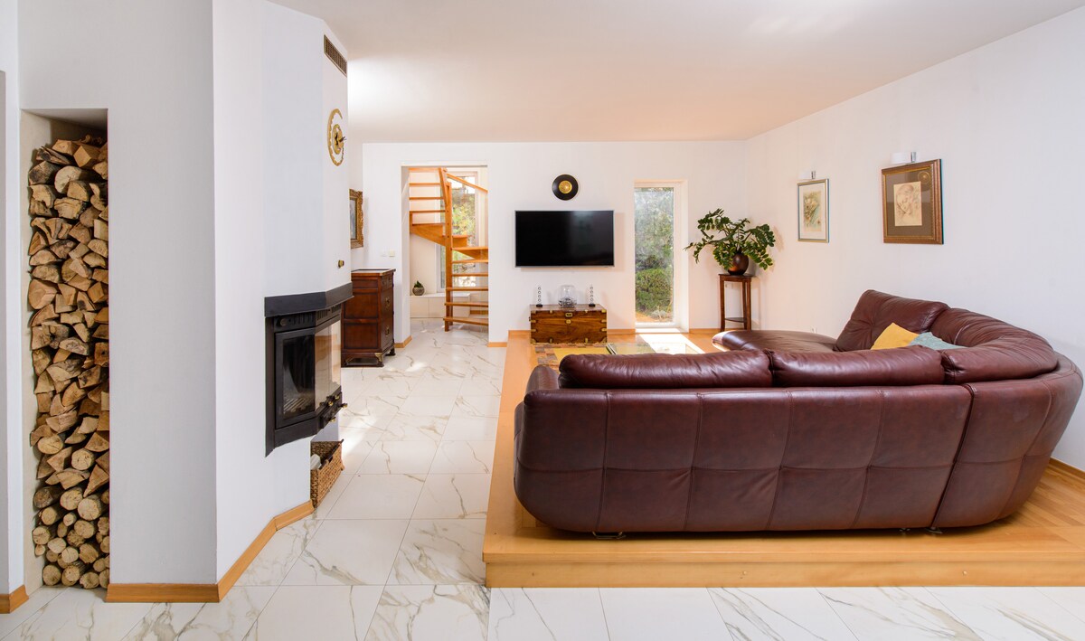 VILLA TISSA avec grande piscine chauffée, jacuzzi, grand jardin, parking privé gratuit, sauna infrarouge, mini salle de sport, ping-pong et parc pour les enfants avec trampoline, balançoires, toboggan, Playstation 4. La maison se compose de 2 objets connectés, entièrement équipés avec une belle vue sur la mer, les îles locales et la montagne du côté nord, connexion Internet Wi-Fi gratuite...
