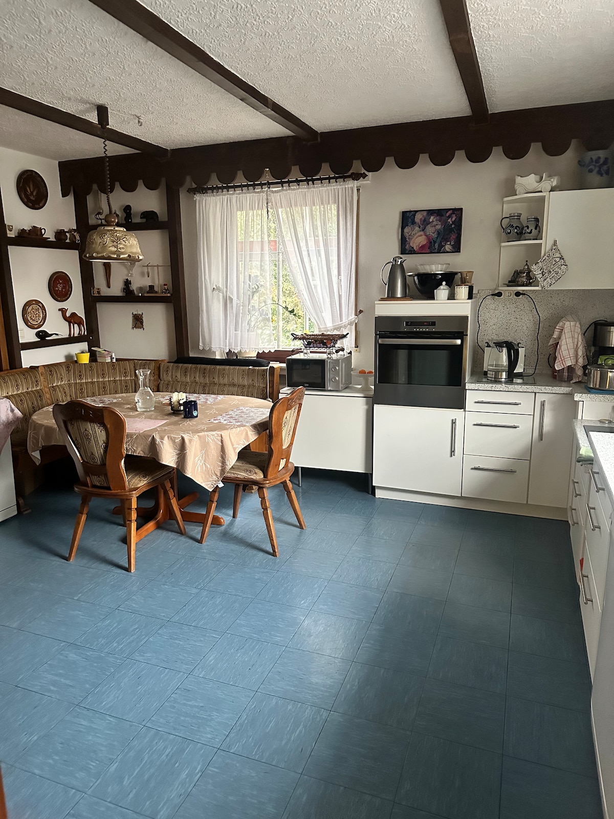 Dieses lichtdurchflutete Apartment bietet auf ca. 80m² Wohnfläche alles an, was man braucht. Es ist geräumig, zum Wohlfühlen und verfügt über schnelles W-LAN fürs Homeoffice, einen Smart-TV, 2 Balkone, Außenjalousien gegen die Sonne im Sommer und vieles mehr. Die Küche ist mit allem erforderlichen hinreichend ausgestattet, ebenso das Bad mit Dusche, Badewanne, Waschmaschine, Handtüchern, Haartrockner und Toilettenartikeln usw. Der Trockner steht im Keller und steht kostenlos zur Verfügung.