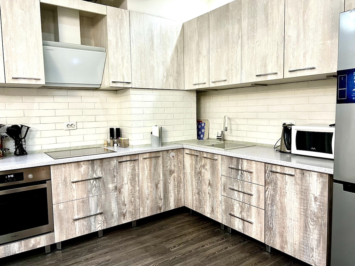 Appartement de luxe confortable pour un séjour agréable dans la maison élite fraîchement construite située dans le centre-ville. La maison est frappante de jour comme de nuit. La nuit, le bâtiment brille très joliment, il peut être vu même de loin. Au rez-de-chaussée de l'immeuble, il y a un supermarché et une pharmacie ouverts 24h/24 et 7j/7, une SALLE DE SPORT, des salons de beauté, une banque. L'appartement est très lumineux et confortable avec toutes les commodités. Le bâtiment est sûr et gardé 24h/24, il y a aussi une aire de jeux sur le territoire.