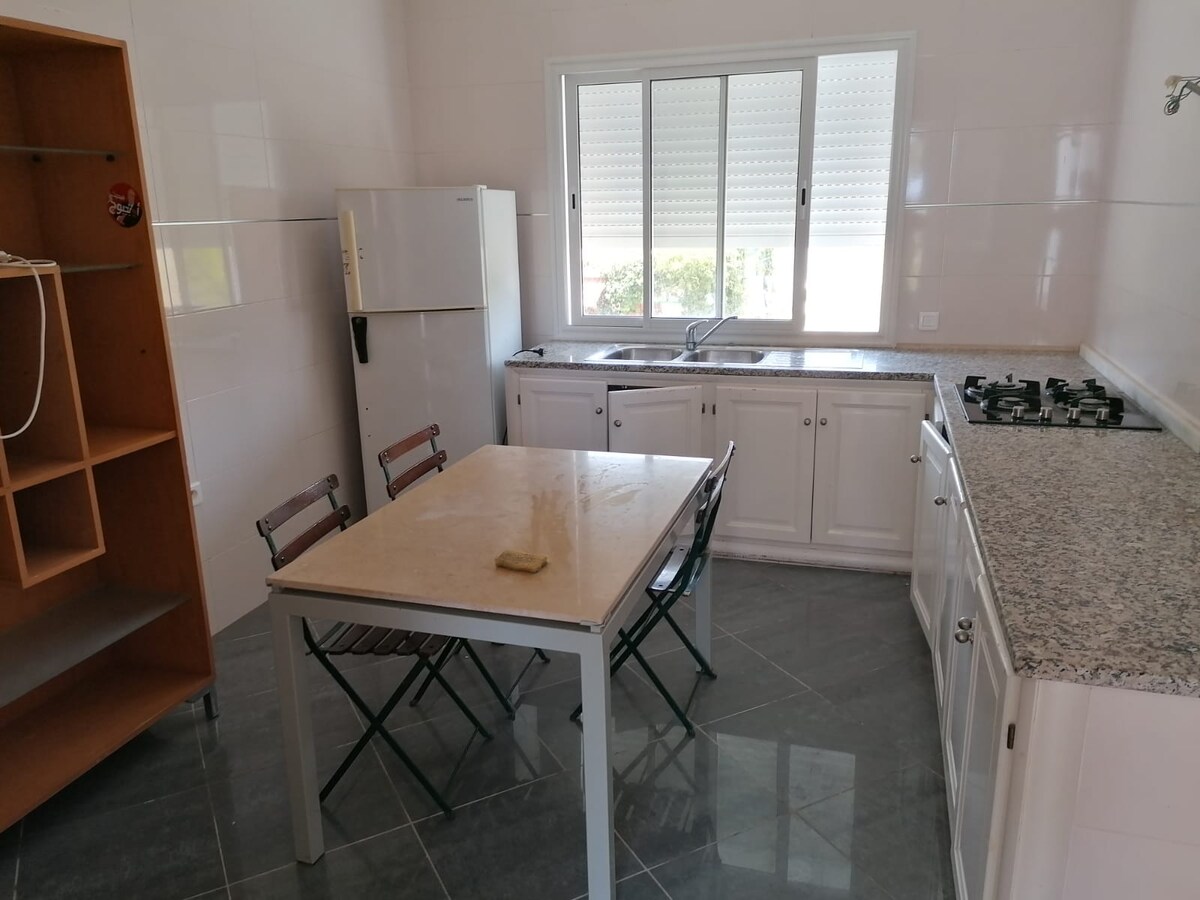 Location d'un appartement spacieux à l'étage à El Bhira Bizerte Avec : - Chambre avec 1 lit - 1 salon - Cuisine - 2 salles de bains avec 2 douches - 2 terrasses avec barbecue. - Télévision - WI-FI GRATUIT -XBox - À 5 min du centre-ville et 5 min de la plage (Corniche) en voiture. - Zone calme - Parking gratuit sous caméra de sécurité CCTV - Piscine - Netflix