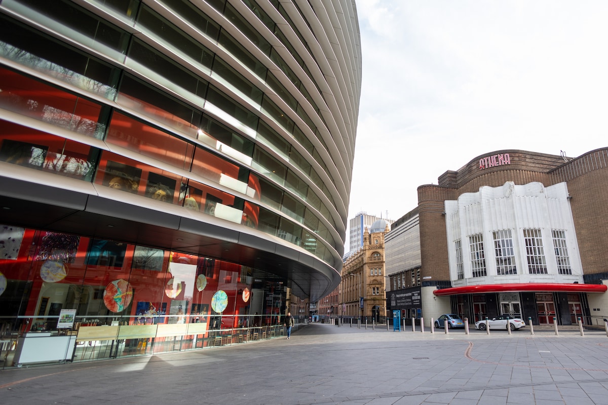 Emplacement privilégié en centre-ville, juste en face de l'emblématique Curve Theatre. Récemment rénové et disponible pour des séjours courte ou longue durée ! L'appartement dispose d'un design lumineux et confortable, de grandes fenêtres et d'un accès direct à l'immense terrasse privée. Chambre double spacieuse avec de nombreux rangements, et canapé-lit disponible sur demande. Cuisine entièrement équipée, espace de travail et 2 salles de bains. Excellentes dessertes en transports. Vue panoramique sur toute la ville depuis votre propre balcon, qui est de grande taille et entièrement privé.