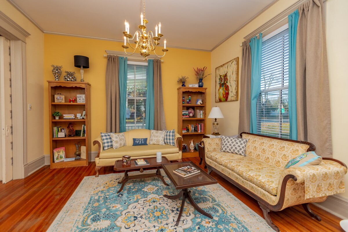 Forget your worries in this spacious historic home full of Southern charm. Sip coffee on the large front porch, relax in the cozy parlor, or enjoy a movie night in the theater room. The well-appointed kitchen has double ovens, 2 refrigerators, & plenty of space for gathering. Walk to local eateries & antique shops or take a short drive to the local creamery for fresh ice cream. We are your perfect peaceful getaway! -Local Eateries & Shops (Walking Distance) -Farmville (30 Mins) -Richmond (1 Hr)