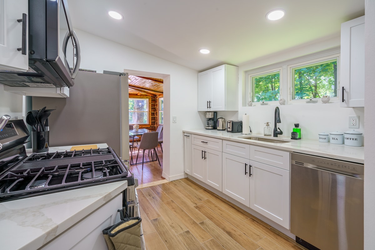 Bienvenue à @ranch_inthewoods Aucuns frais de ménage Permis DE location courte durée #34035 Cette maison de style ranch nouvellement construite avec des intérieurs wabi-sabi soigneusement conçus se trouve dans les bois de la vallée de Warwick. Il est situé à quelques minutes en voiture de plusieurs lacs, sentiers de randonnée, brasseries et expériences culinaires. Il dispose d'une vue sur la forêt/le ruisseau, de meubles design, d'appareils modernes (lave-vaisselle, lave-linge/sèche-linge, cuisinière à gaz), d'une télévision 4K intelligente, d'une salle de sport et d'un studio de yoga, d'un foyer à gaz et d'une grande terrasse avec une cuisine extérieure et un coin repas.