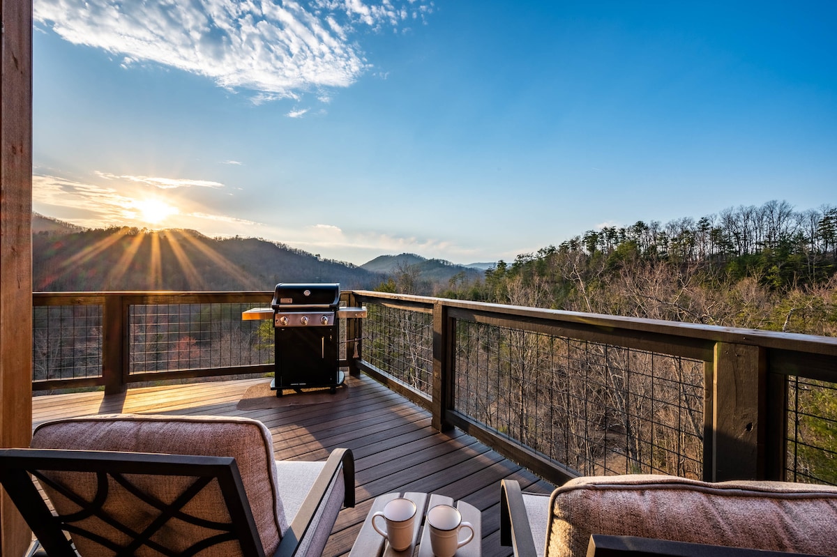 Copper Mountain Lodge propose des vacances en chalet de luxe haut de gamme. Ce chalet privé de plus de 3600 pieds carrés construit sur mesure offre une vue imprenable à 270 degrés sur la montagne ainsi que 4 grandes chambres (3 suites parentales) + salles de bains principales attenantes, une cuisine entièrement approvisionnée qui s'ouvre sur les salles à manger et les salons et peut accueillir un total de 12 personnes. L'emplacement est idéalement situé juste à côté de l'autoroute 321 et à 20 minutes de la promenade de Pigeon Forge et de toutes ses attractions.