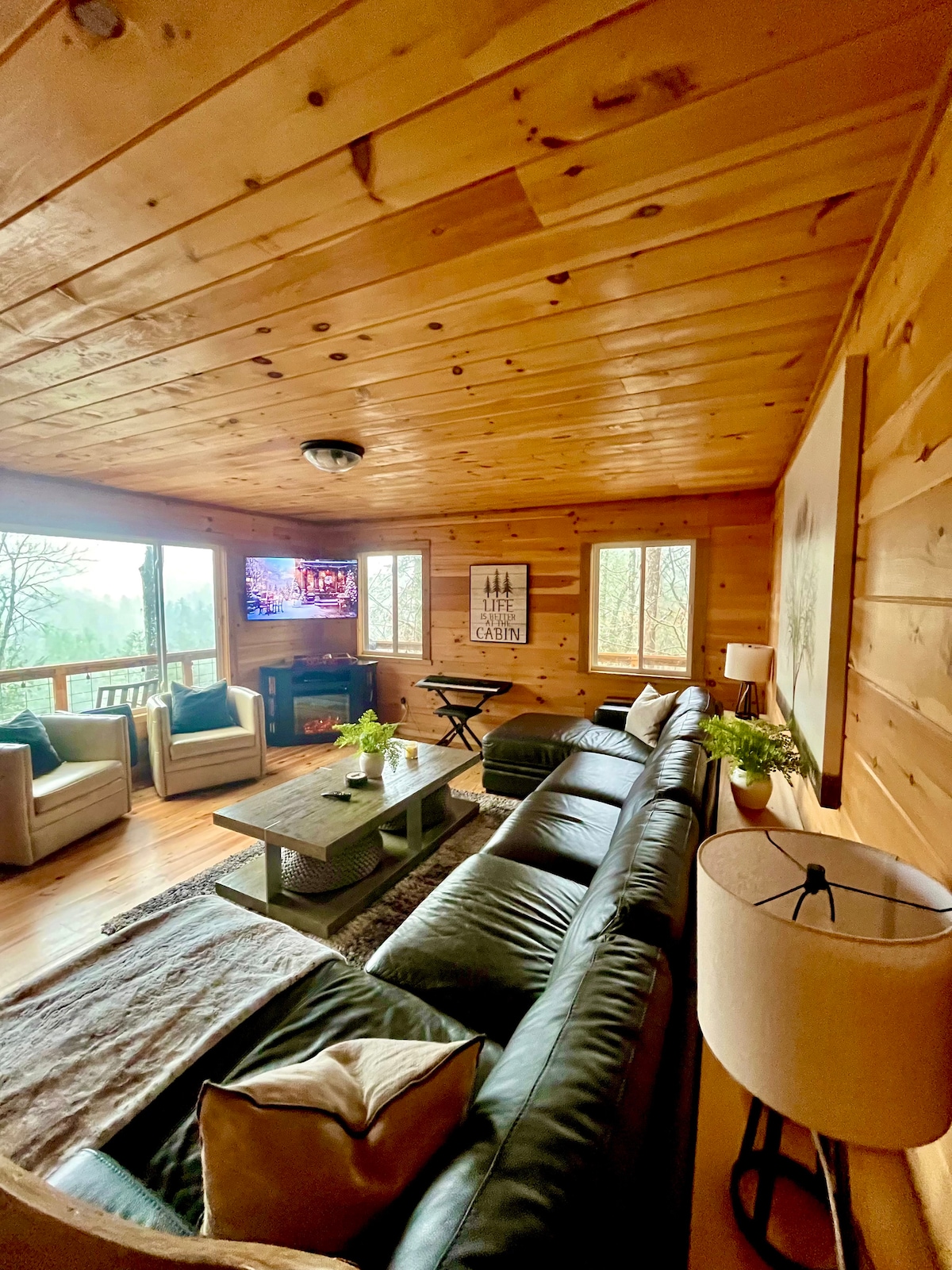 À seulement 7 minutes du centre-ville de Blue Ridge, Bramble est votre terrain de jeu en montagne Jouez au pickleball sur votre court privé, faites un trou d'un coup au mini-golf ou détendez-vous dans le jacuzzi pour 6 personnes tout en admirant les pâturages vallonnés avec des vaches et des chevaux. Installez-vous confortablement près de l'une des 3 cheminées, profitez d'une soirée cinéma en plein air ou défiez vos amis à une partie de billard ou de cornhole. Avec 3 chambres spacieuses, plusieurs espaces de rassemblement et des activités infinies, Bramble est parfait pour des vacances en famille, des escapades en groupe et des escapades romantiques.