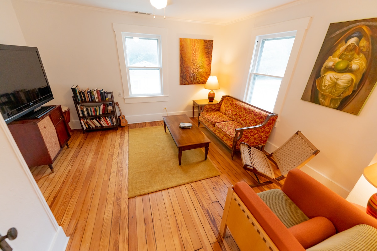 Appartement à l'étage super style rétro ! C'est l'appartement du dernier étage d'une maison construite en 1898. Il est à seulement 5 minutes à pied du centre-ville de Lee's Summit ! Il est proche des restaurants, cafés, activités familiales, commerces, bars et toute une série de divertissements. Vous apprécierez le logement pour l'emplacement, l'ambiance et les gens. Il est parfait pour les couples, les aventuriers en solo, les voyageurs d'affaires et les familles (avec enfants).