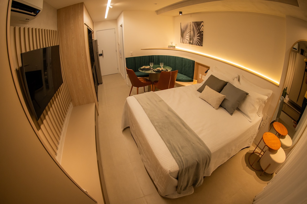 L'appartement est idéalement situé dans Boa Viagem, chambre et salon, avec lit double et canapé-lit, plaque de cuisson 2 bouches et micro-ondes, 2 air-cond (Split), 2 Smart TV, wifi, placard, miroir, table de travail, table à manger, ustensiles et appareils électroniques de cuisine, pièces de lit et de bain. Meublé, espace garage (Confirmer au moment de la réservation), mobilier planifié, salle de fitness. Proche de Shopping Recife (10 min à pied), de la plage (10 min à pied) et devant Big Good price (Supermarché avec services publics)
