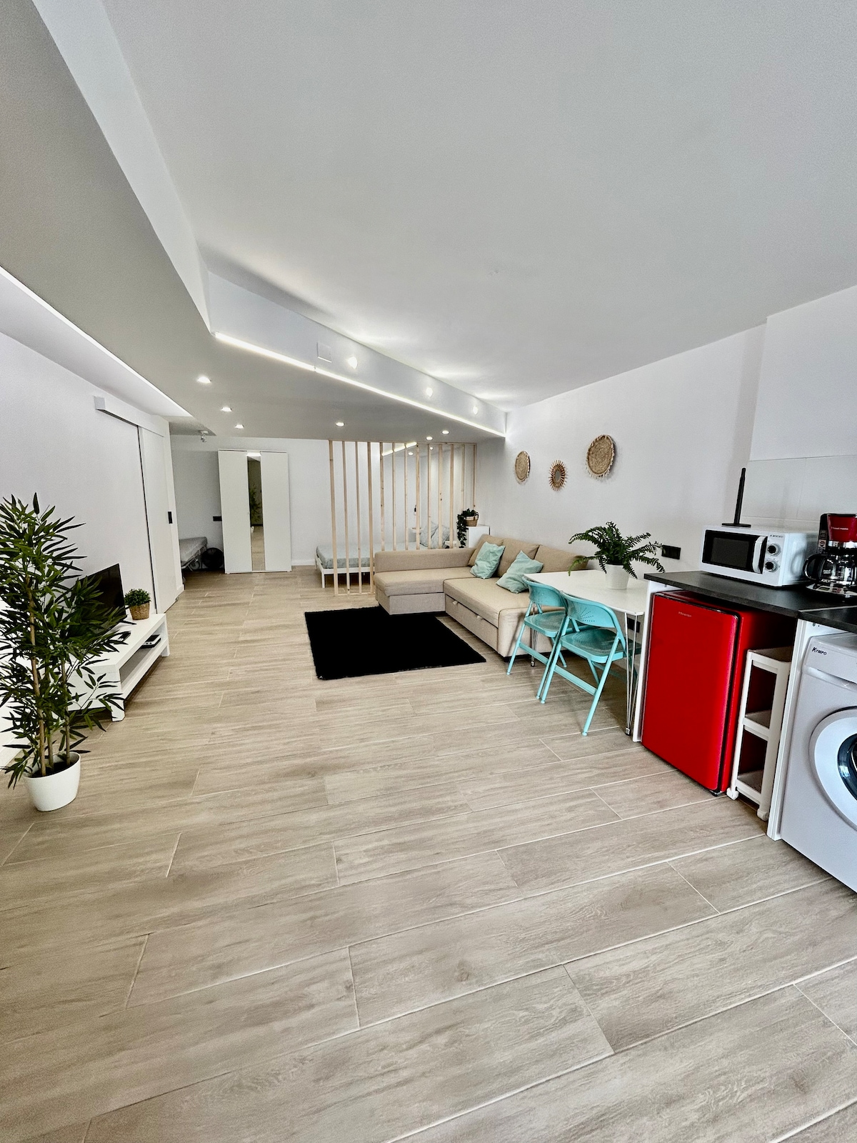 Precioso apartamento de una habitación totalmente equipado y recién reformado a 10 minutos de la capital y a 35 minutos del sur de la isla. En primera línea de playa con unas vistas inigualables, con acceso a piscina natural ubicada a escasos metros y al muelle, donde podrás bañarte en el mar. Si lo prefieres, puedes acceder al club deportivo con canchas para varios deportes, gim y piscina (acceso privado). Complejo tranquilo, con buena conexión al bus público y varios supermercados.