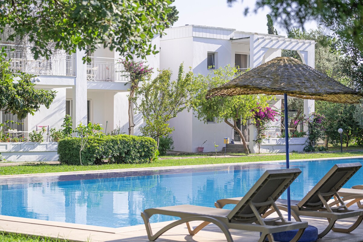 Une expérience de vacances sans restriction et privée Muskebi Suits&Apart, composé de 32 appartements avec 2 chambres, 2 salles de bains, 3 climatisations et des intérieurs pratiques meublés avec les articles nécessaires pour votre confort, est situé au centre à 3 minutes de sa propre plage à Bodrum Ortakent. Vous aurez le privilège d'un grand jardin pour un moment agréable en famille ou entre amis, d'un balcon privé pour le petit déjeuner, d'une piscine commune propre et bien entretenue que les enfants adorent, d'une réception ouverte 24h/24 et d'un parking.