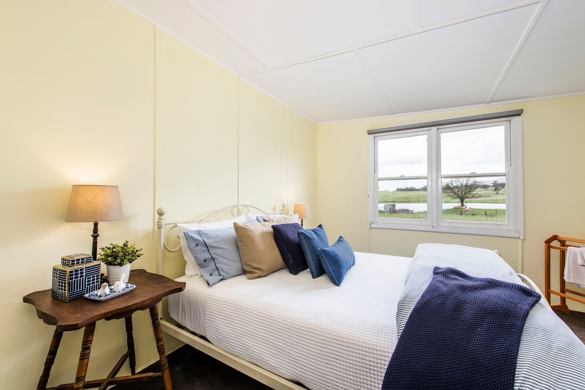 Situé dans une véritable ferme familiale en activité, ces quartiers de tondeurs autrefois abandonnés dégagent beaucoup de charme champêtre ! Asseyez-vous sur la véranda unique et regardez les animaux paître, admirez la vue magnifique et l'air frais de la campagne ou blottissez-vous près de la cheminée ouverte avec un bon livre et un vin local. Idéalement situé parmi certains des meilleurs gisements d'or historiques de l'État tels que Sofala, Hill End et Windeyer et à seulement 45 minutes en voiture de la ville primée et toujours populaire de Mudgee. Seulement 75 $ pp/pn. Peut accueillir 4 à 5 personnes.