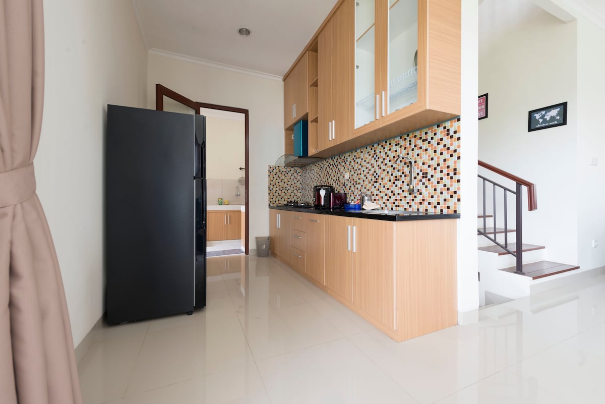 Une maison de 3 chambres au milieu du complexe de golf le plus luxueux de Bogor. Convient aux familles avec enfants. Grande cour arrière avec terrasse en bois pour profiter de la lumière du soleil du matin. Grand balcon faisant face à une vallée verdoyante et au lever du soleil. Cuisine entièrement équipée avec réfrigérateur, distributeur d'eau froide/chaude, cuisinière, cuiseur à riz, grille-pain, ensemble de cuisson, ensemble de salle à manger, machine à laver, installations de repassage. Télévision par câble avec grand écran (55"). Wifi gratuit 20 MBps.