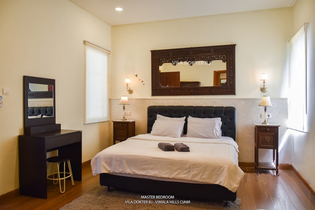 Relax with the whole family at this peaceful place to stay (ENTIRE PRIVATE VILLA). Located in Vimala Hills premium Resort areas at the height 450-700 m above sea level, surrounding with 3 mountains Pangarango, Salak & Geulis, provided cool and breeze weather.