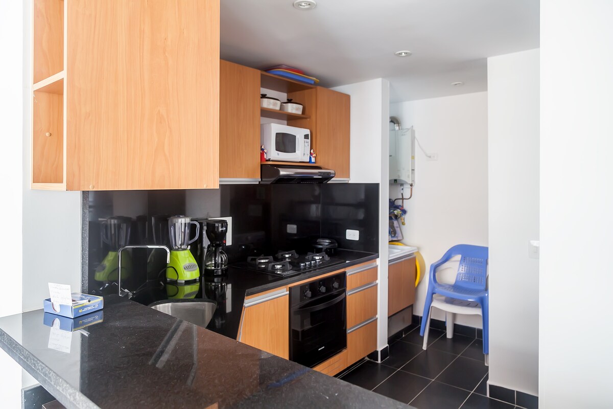 Bienvenue dans cet élégant appartement de 96 m², situé à seulement 10 minutes en voiture de l'ambassade des États-Unis. À 5 minutes à pied du centre commercial Hayuelos et à 12 minutes de l'aéroport. Avec des finitions de luxe, il est idéal pour les familles et les longs séjours. 🛋️ Tout équipé avec : • Smart TV 65″ • Wi-Fi haut débit 290 mbp • Machine à laver • Salle de sport dans l'ensemble • Terrain de football à 5 en synthétique • Terrain de squash 📌 Lire l'annonce complète avant de réserver