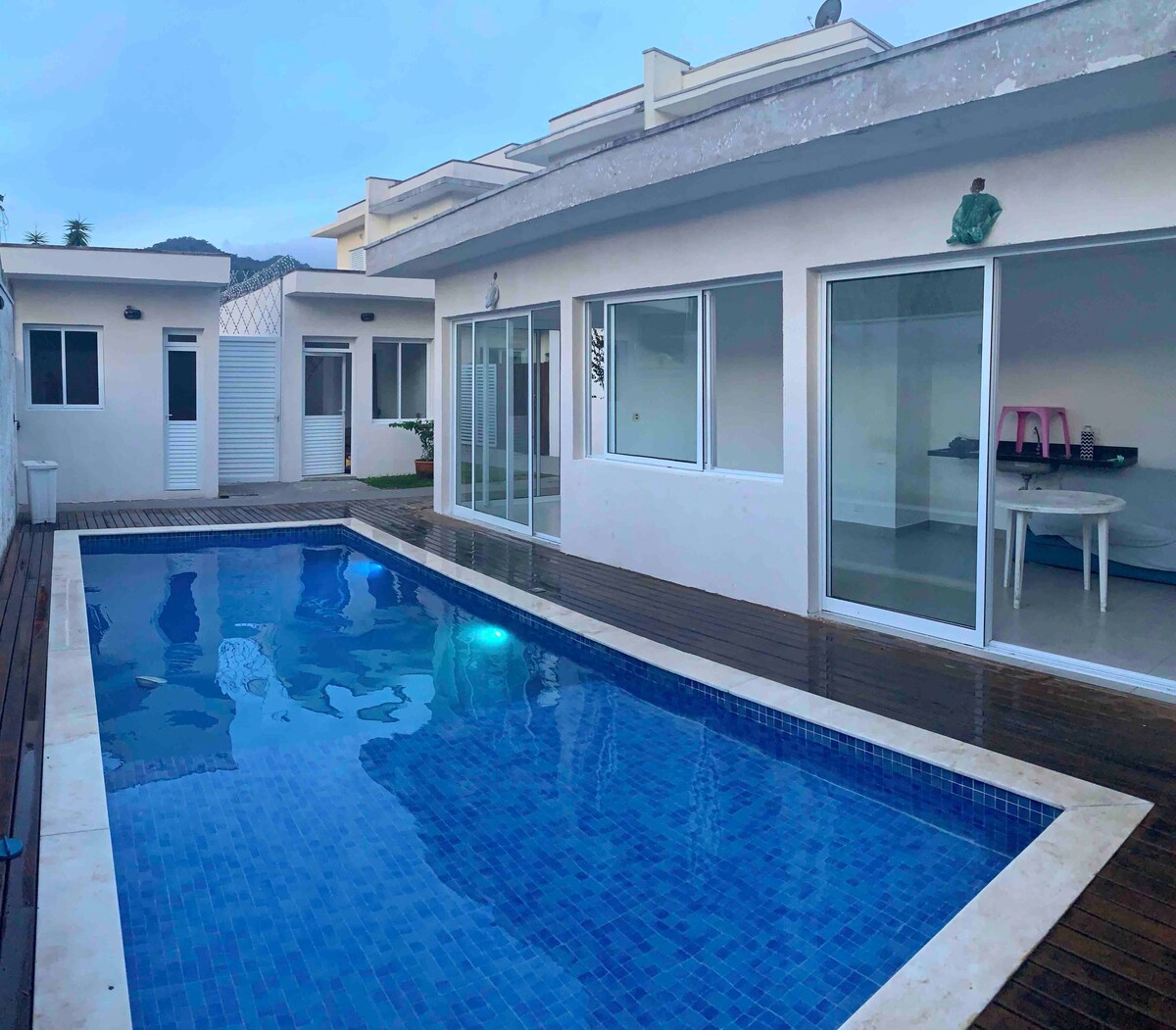 Chalet parfait avec Internet 600 Mégas et NETFLIX pour location en famille. La copropriété est assez boisée, calme et est située en face de la plage de Boicucanga (il suffit de traverser la rue), avec un système de sécurité 24H/24. Il propose des activités pour toute la famille, à proximité d'un supermarché, d'un centre commercial, de restaurants et d'une salle d'urgence. Tout cela sans avoir besoin de prendre la voiture. Vous allez adorer la propreté et le confort de la maison dans un endroit avec une nature abondante et un excellent espace de loisirs pour tous les âges.